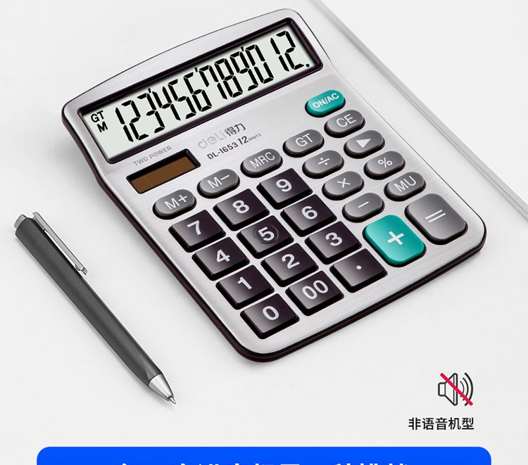 得力(deli)雙電源寬屏辦公桌面計(jì)算器 財(cái)務(wù)計(jì)算機(jī) 辦公用品 銀白色1653